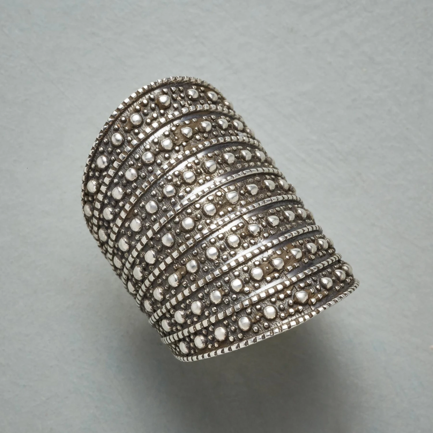 Inspired by nature’s beauty and ingenuity, deeply textured oxidized sterling silver broadens dramatically atop the finger. Exclusive. Whole sizes 5 to 10. Tapers 1-1/8″ to 1/4″W.