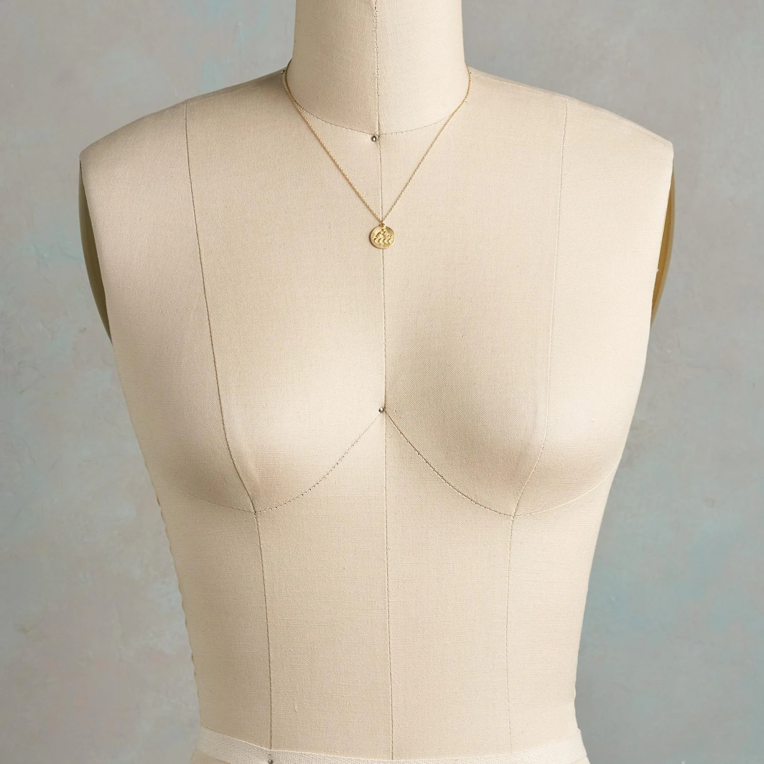 Each 18kt gold disk bears a bas-relief sign of the zodiac, making for a lavish and personally meaningful birthday gift. Handmade in USA by Marian Maurer. Specify zodiac sign. 16″l; 1/2″ drop.