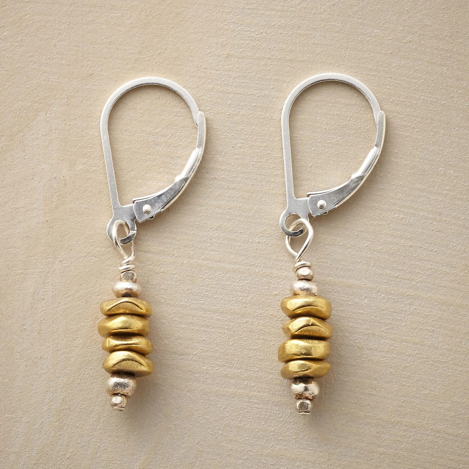 Brass pebbles stacked between sterling beads sway from the lever back wires of our brass and sterling silver bead earrings. Handcrafted in USA exclusively for Sundance. 1-1/4″L.