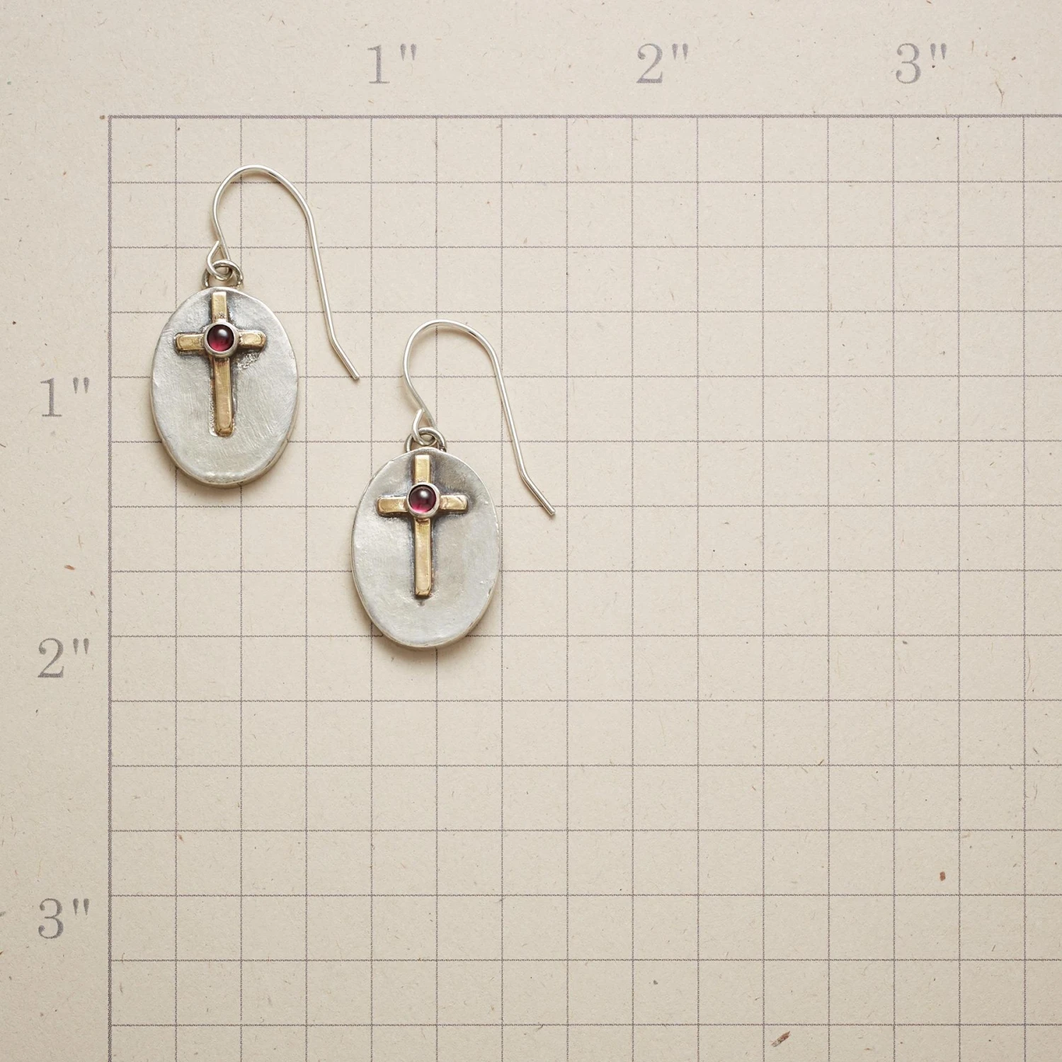 Simple crosses in 14kt gold, each with a glowing garnet at its heart, turn our sterling silver earrings into evocative expressions of faith. Sterling French wires. Exclusive. 1-3/8″L.