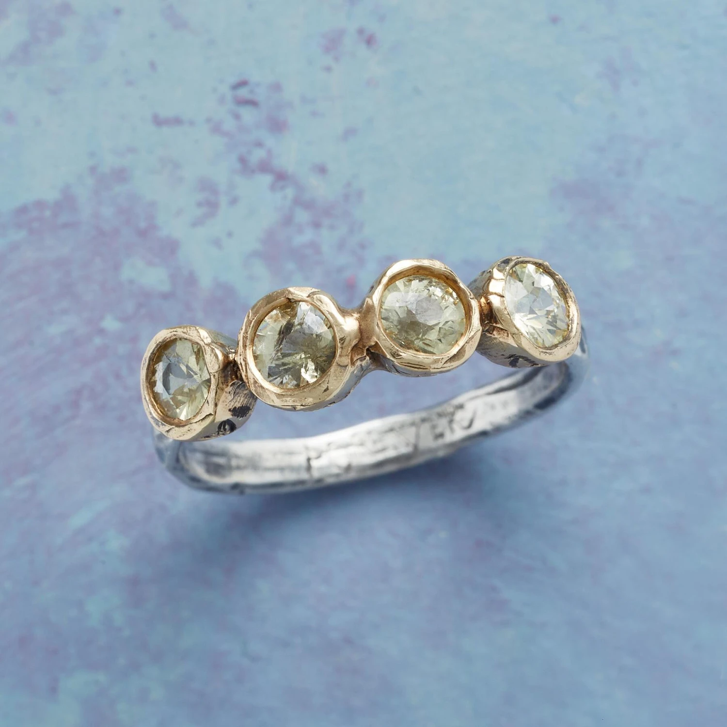 A glittering diamond quartet, the gems set in 14kt gold, represents steadfast devotion. Jes MaHarry writes “Forever” within the hammered sterling silver band. Exclusive. Handmade in USA. Whole sizes 5 to 9.