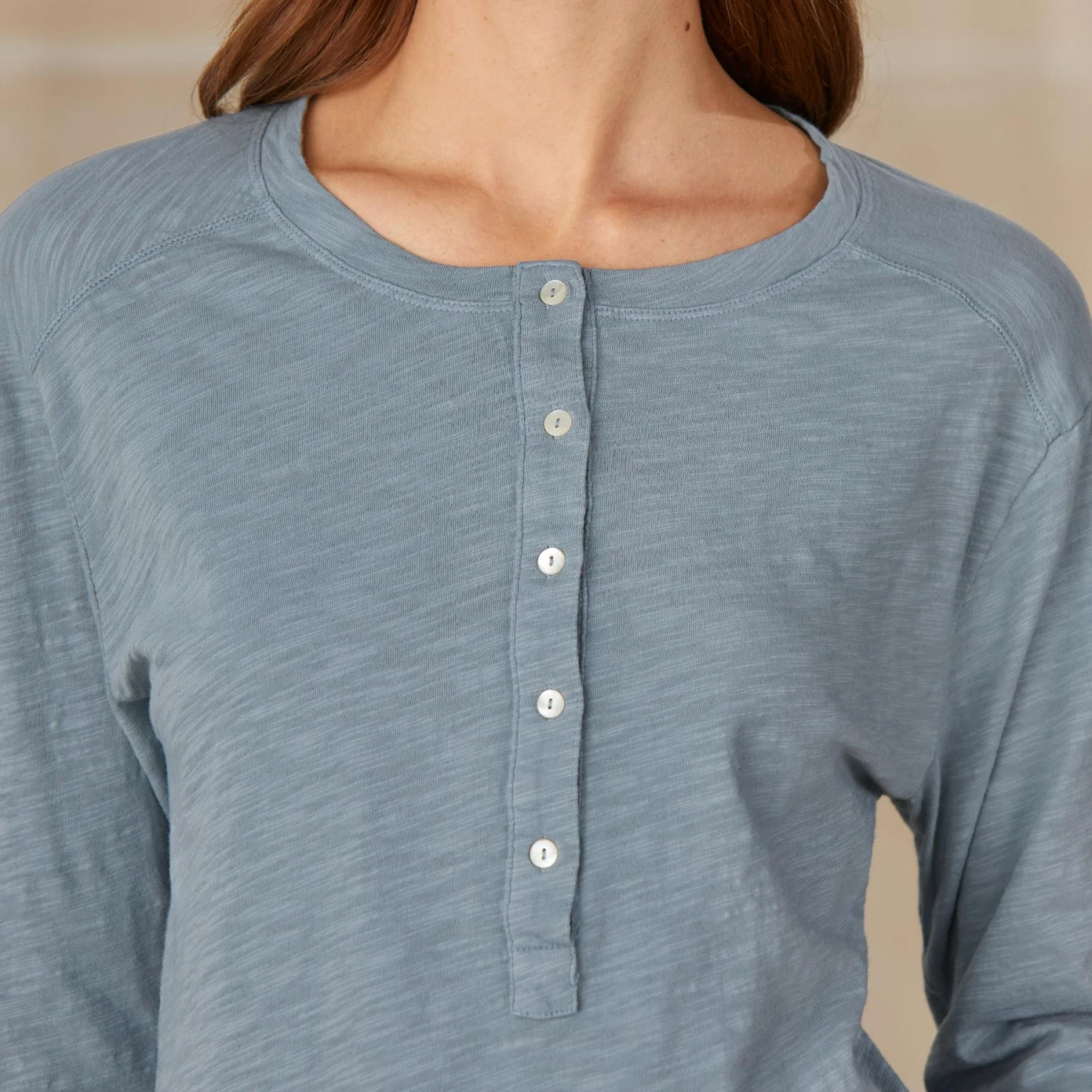 This garment-dyed, cotton slub top offers casual style and a relaxed fit with classic henley placket and side slits. Machine wash. Imported. Sizes XS (0 to 2), S (4 to 6), M (8 to 10), L (12 to 14), XL (16 to 18), XXL (20 to 22). Front approx. 25″L.