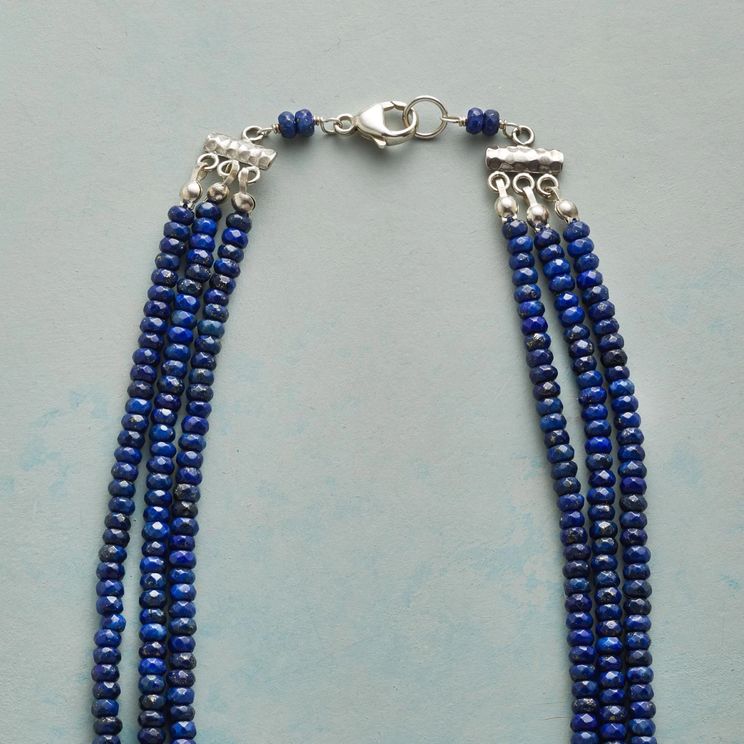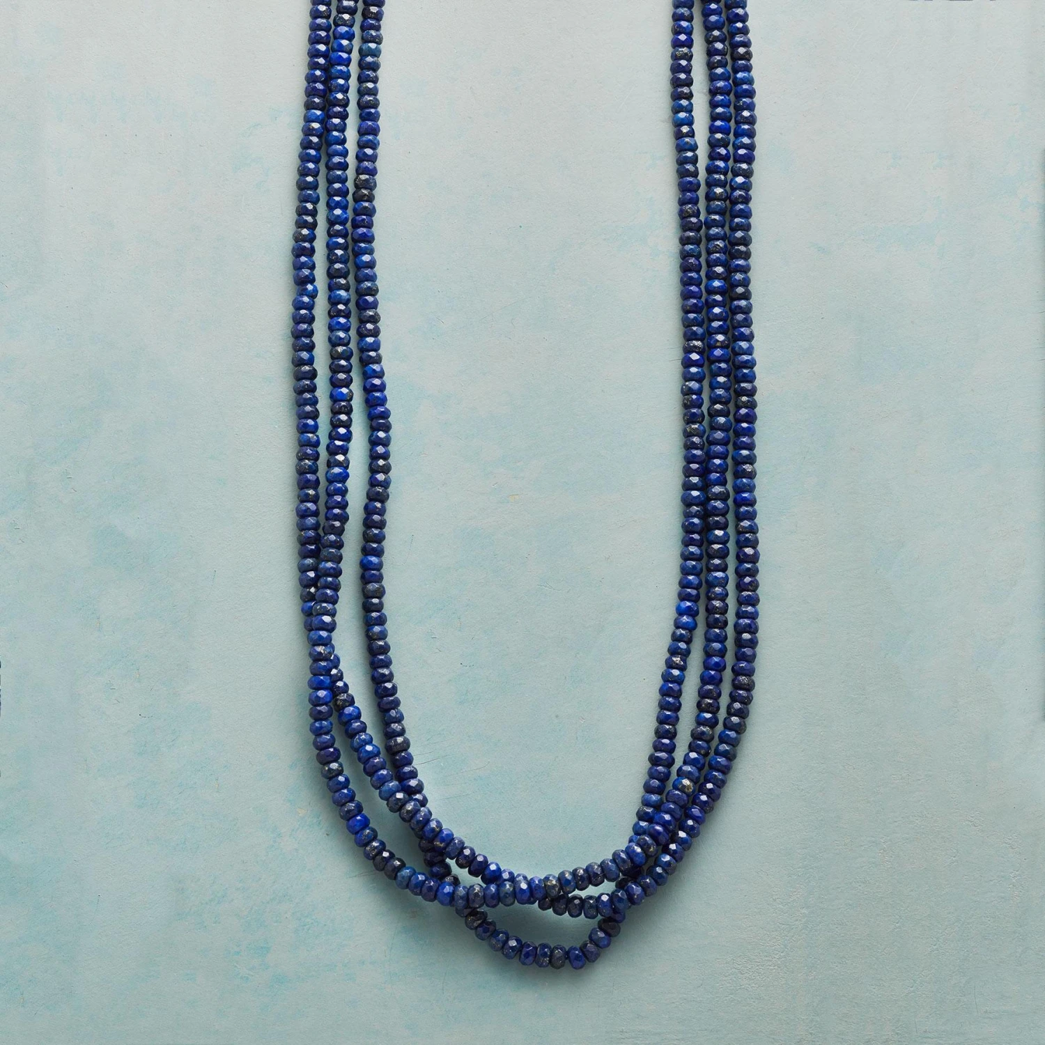 Our three-strand homage to lapis lazuli, a stone long valued for its deep blue hue. Sundance exclusive. Handcrafted in USA with hammered sterling silver findings and lobster clasp. 18″L.