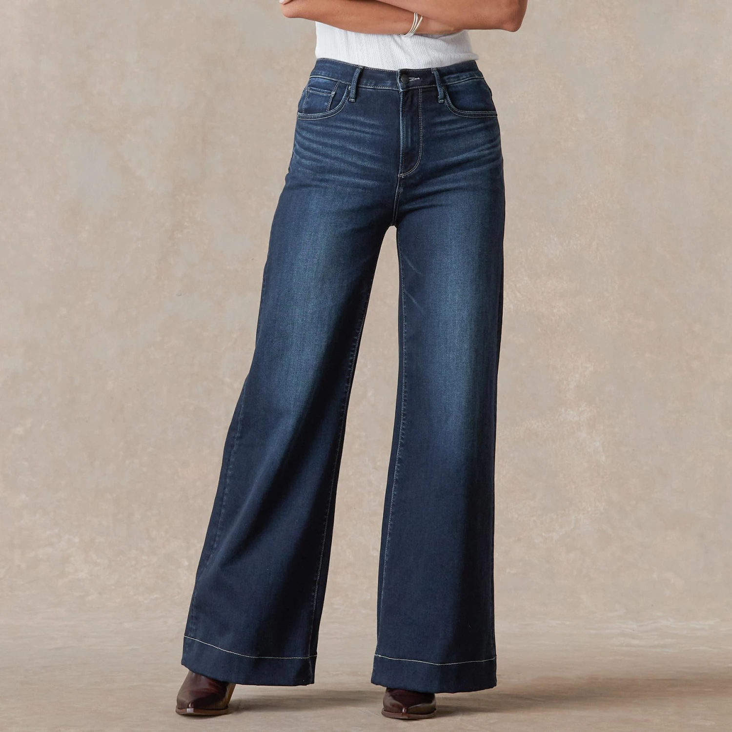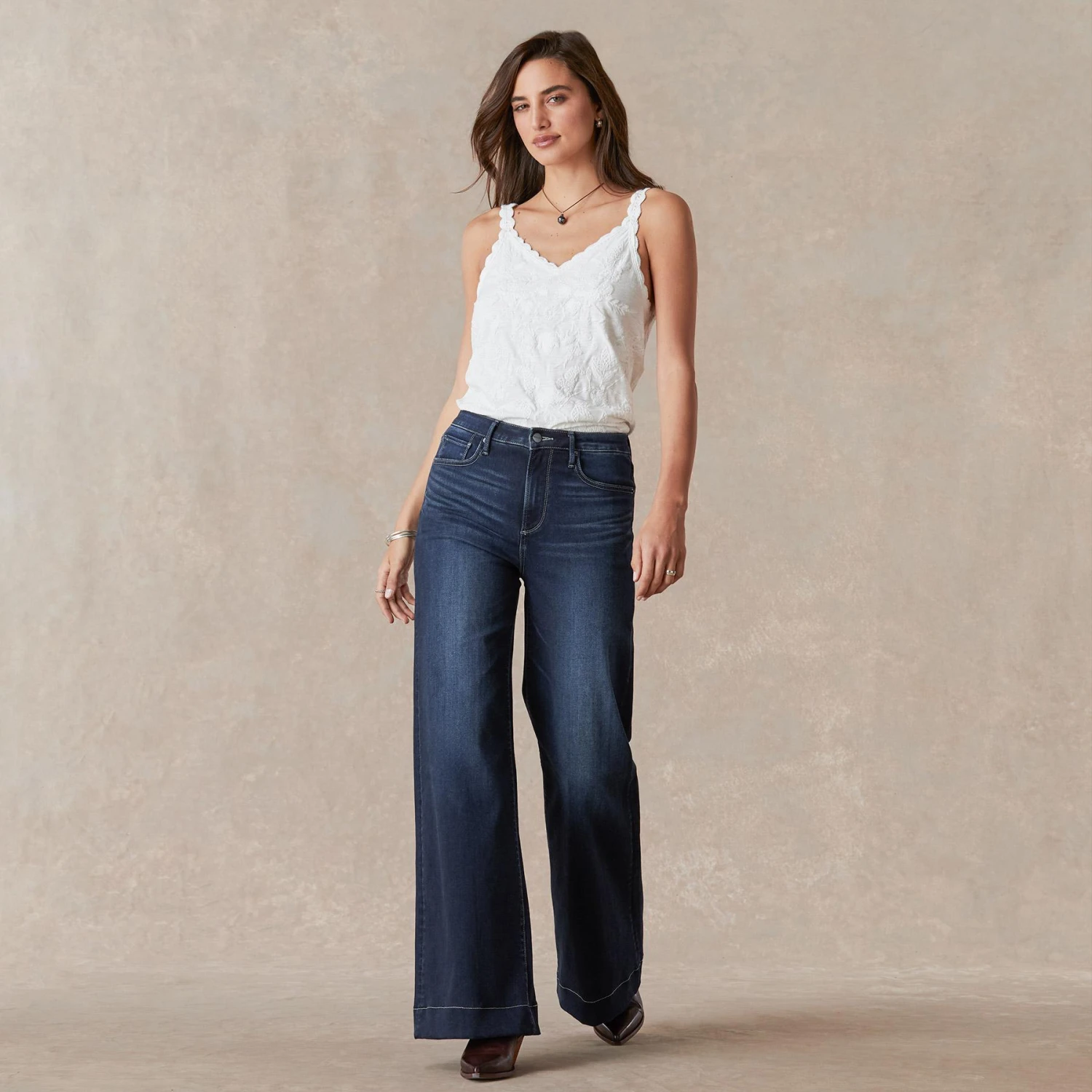 Stretchy, five-pocket styling with dramatic wide legs that grace the ankles. Cotton/spandex. Machine wash. Imported. Sundance exclusive. Sizes 24 to 32. 32″ or 34″ inseam, 11″ rise, 26″ leg opening.