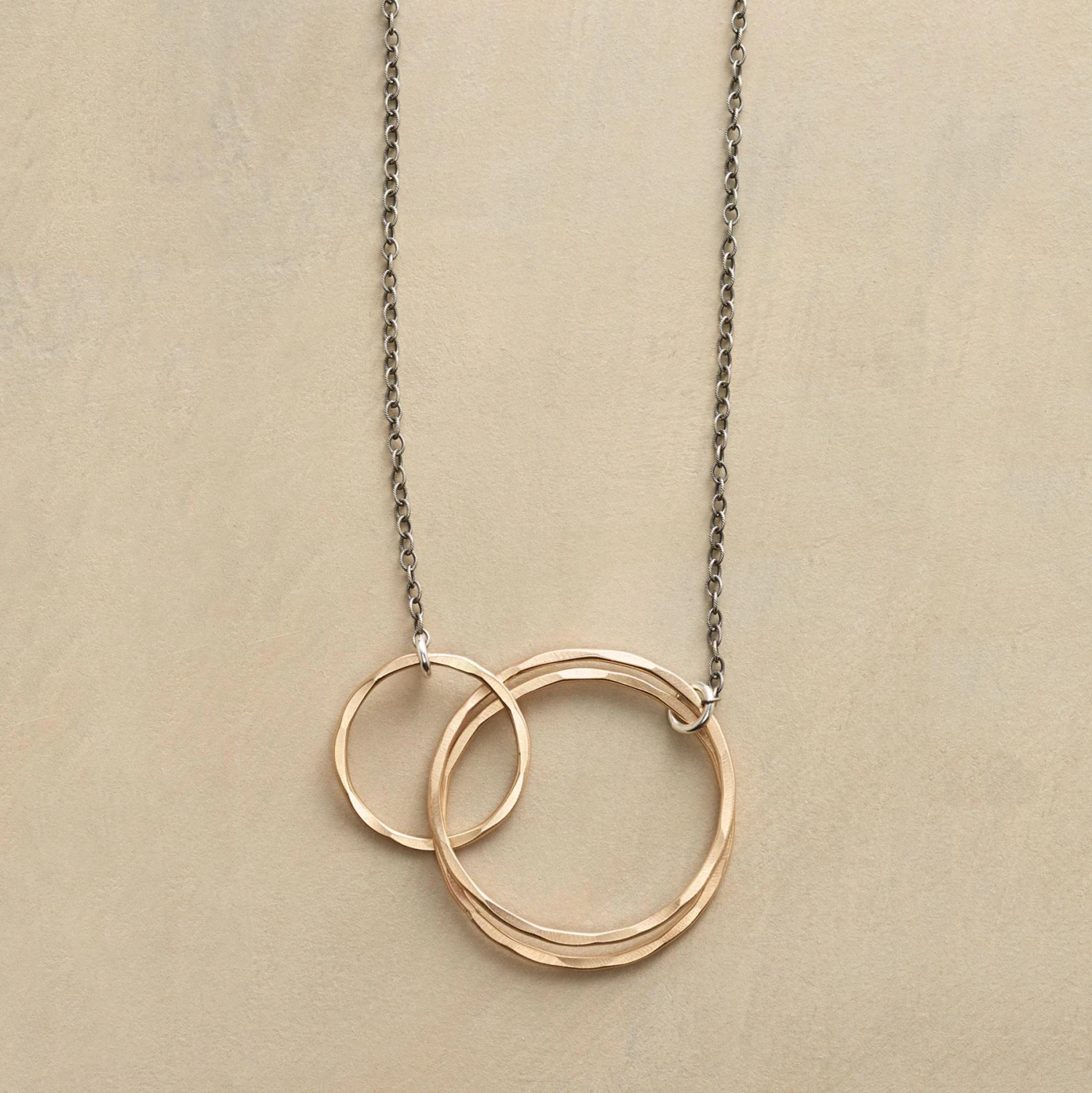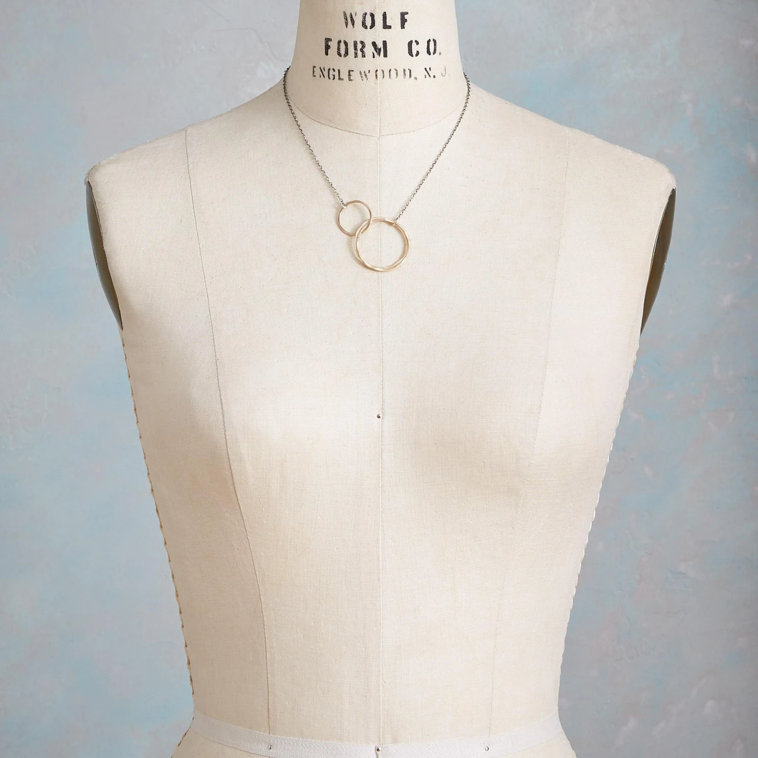In this golden rings and sterling links necklace, oxidized sterling silver holds together circles of 14kt gold filled and brings together every look with modern style and simple grace. Sterling silver clasp. USA. Exclusive. 17″ to 19″L.