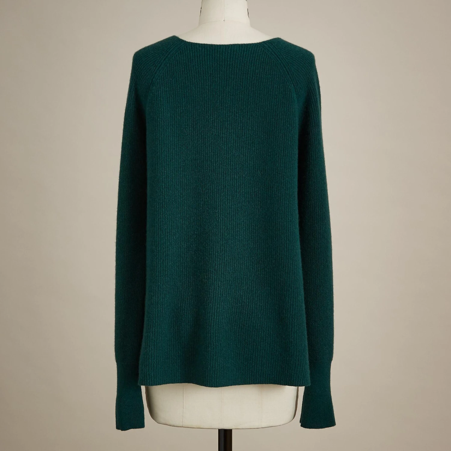 Easy elegance, delicate V-neck with rib detail, side slits. Cashmere. Hand wash. Imported. Exclusive. Sizes XS (0 to 2), S (4 to 6), M (8 to 10), L (12 to 14), XL (16 to 18), XXL (20 to 22). Approx. 25″L.