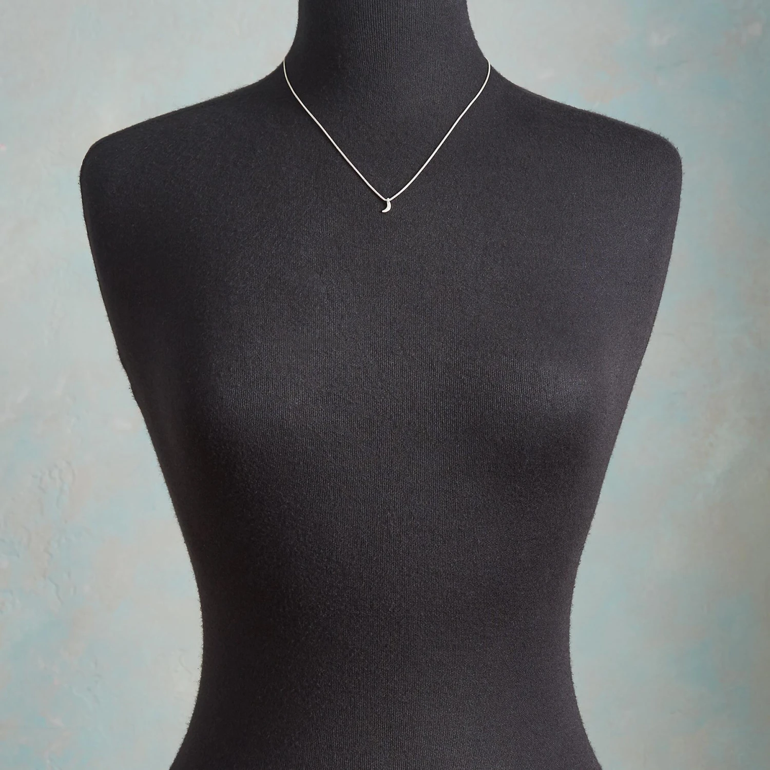 Saundra Messinger gives the crescent moon on this necklace a shimmering finish, then embeds a sparkling diamond for a flicker of starlight. Sterling silver; lobster clasp. Handmade in USA. 16″ to 18″L.